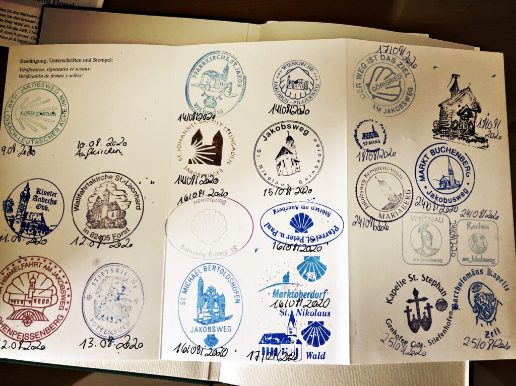 Als ich mich im Jahr 2020 von München aus auf dem Weg zum Bodensee machte, ahnte ich nicht, dass ich drei Jahre später mehr als 2500 km gegangen sein werde. Mich hatte der Jakobsweg eigentlich nie wirklich interessiert. Ich wollte einfach raus aus der Stadt und ein paar Tage in der Natur sein. Dass die Strecke, die ich vor mir hatte, auf dem Jakobsweg lag, sah ich erst, als ich mir den Reiseführer genauer anschaute. Meine kindliche Freude am Sammeln von Stempel und der Aussendungsgottesdienstes der Schwestern von Sankt Jakob am Anger in München, wo ich meinen Pilgerausweis bekam, weckten die Pilgerin in mir. Als ich Bregenz, mein Ziel, erreichte, hatte der Jakobsweg mich erwischt.